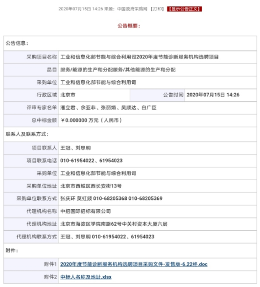 7月15日,瑞澤能源在工信部節能與綜合利用司2020年度節能診斷服務機構選聘項目中成功中標。